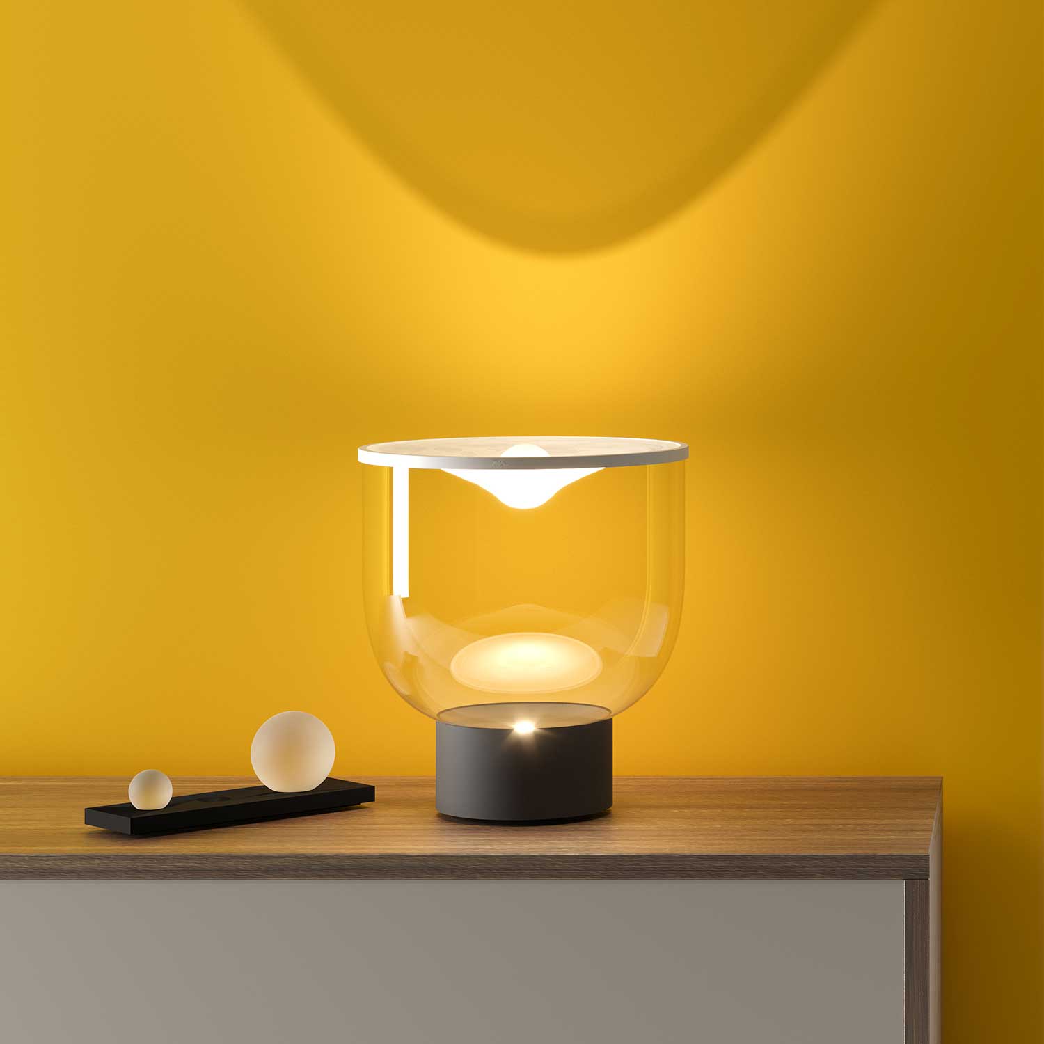 The Grammoluce table lamp by Martinelli Luce is a unique fusion of technology, design and interaction. Its softly diffused LED light changes character depending on how you engage with it, transforming illumination into a poetic experience.