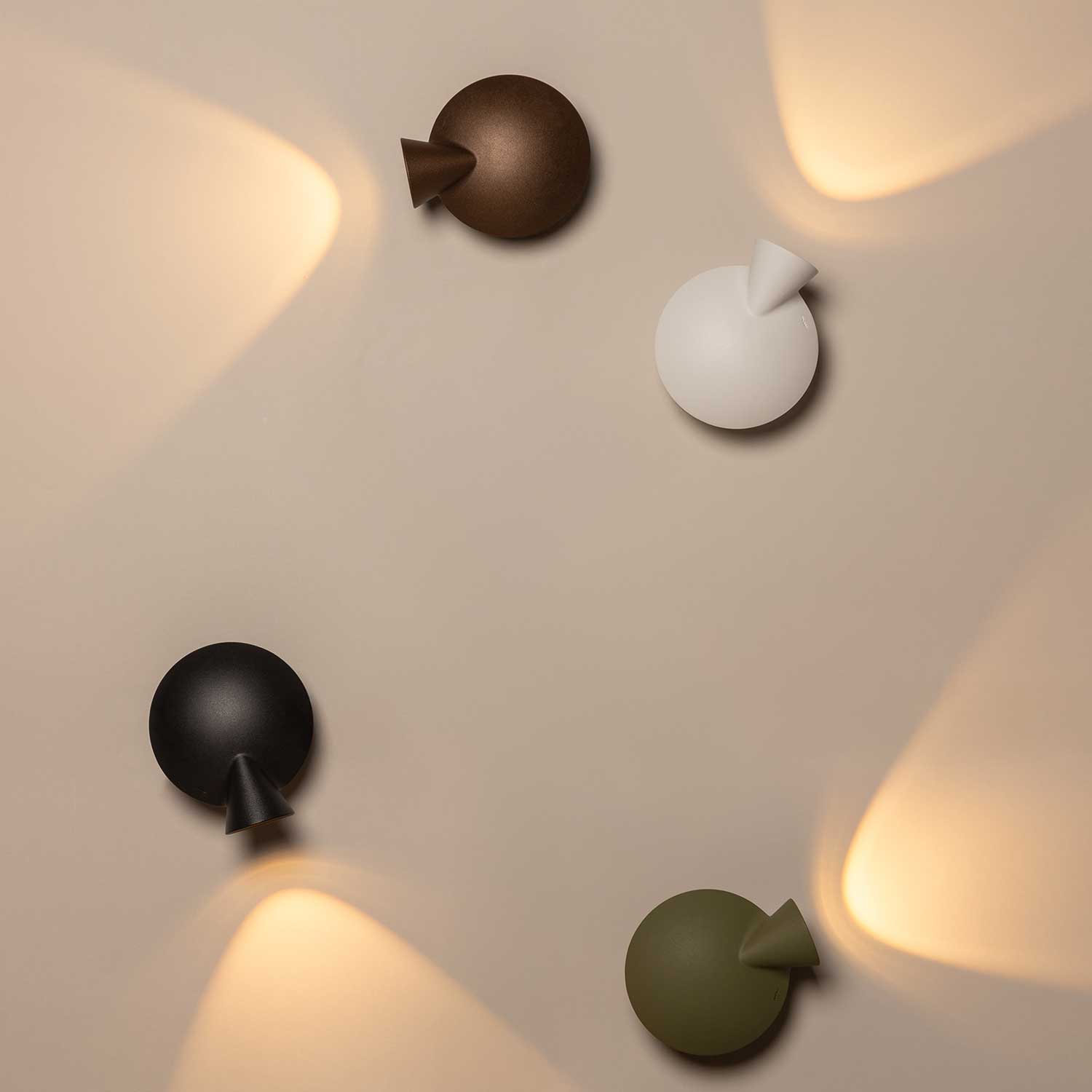 Tortuga is a compact wall light that combines functionality with a minimalist and distinctive expression. Made from die-cast aluminium, the lamp is defined by its 360° rotation and 43° tilt, offering great flexibility in use.